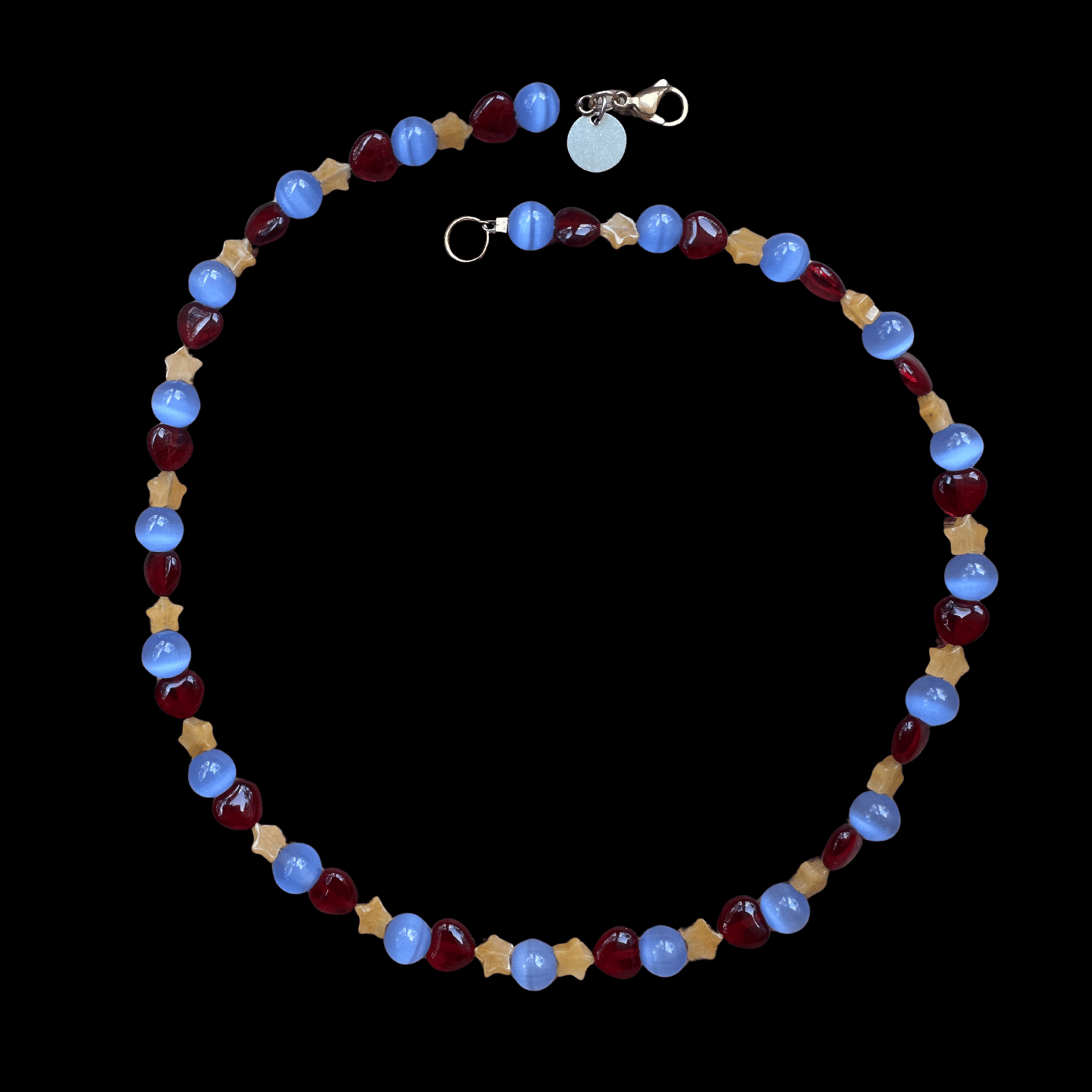 Orange aventurine and glass. 18in with gold-plated hardware.