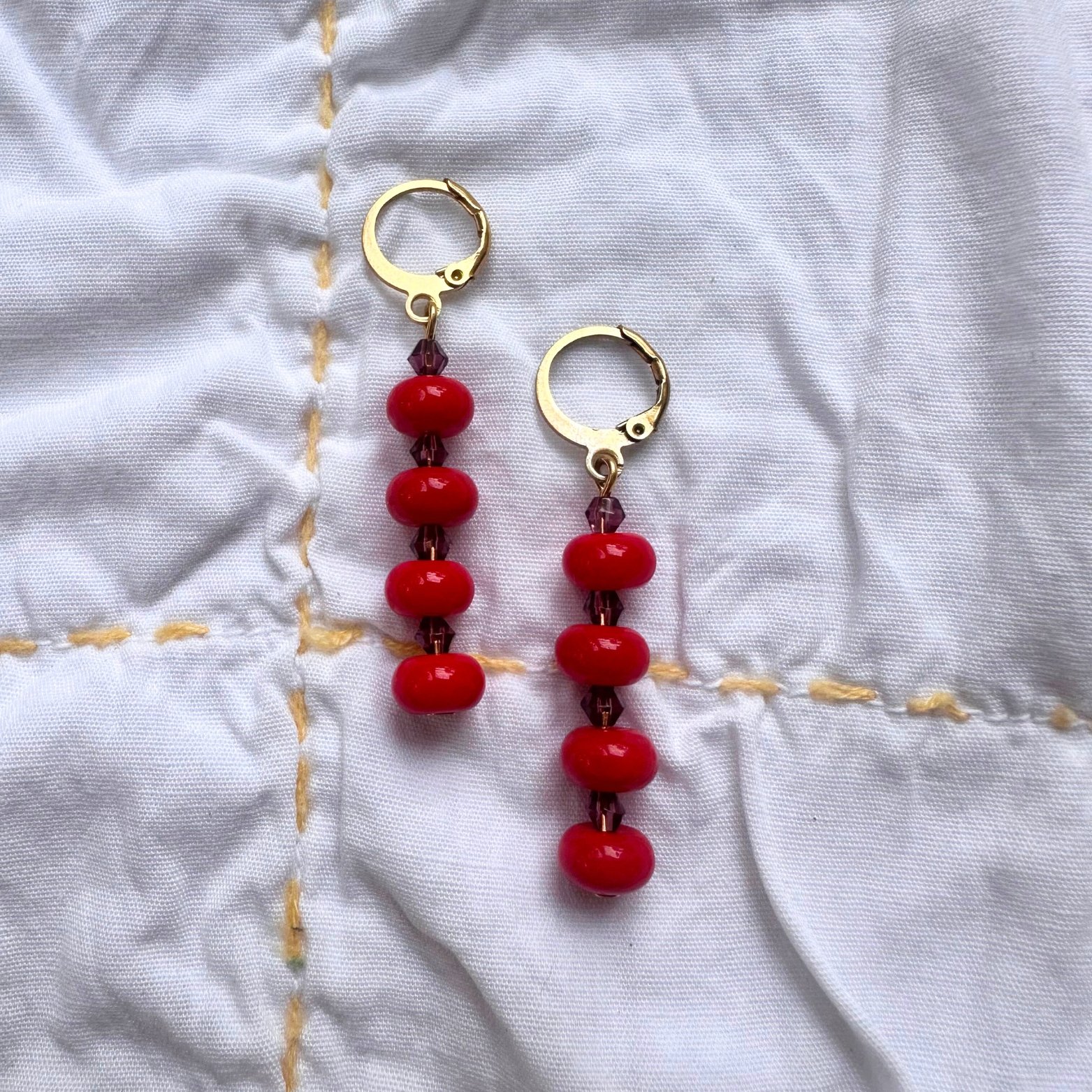 Glass beads on gold plated stainless steel.